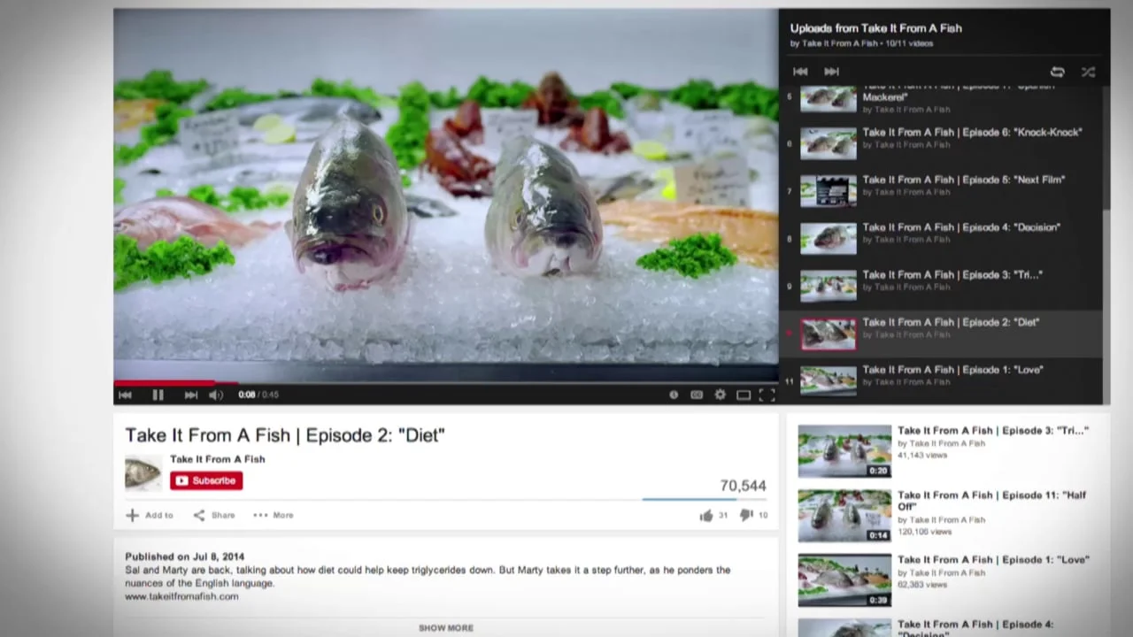 People with high Triglycerides (that’s bad) are really reluctant to take their meds. They hate being scolded by their spouses, kids, and doctors. So we created a fish to do it.